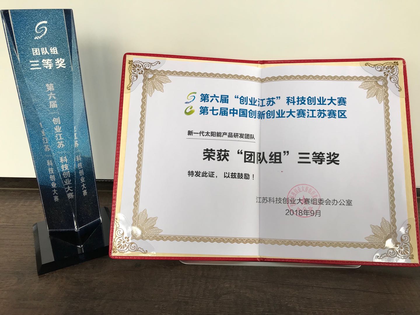 2018年第六届“创业江苏”江苏省科技创业大赛总决赛团队组三等奖;